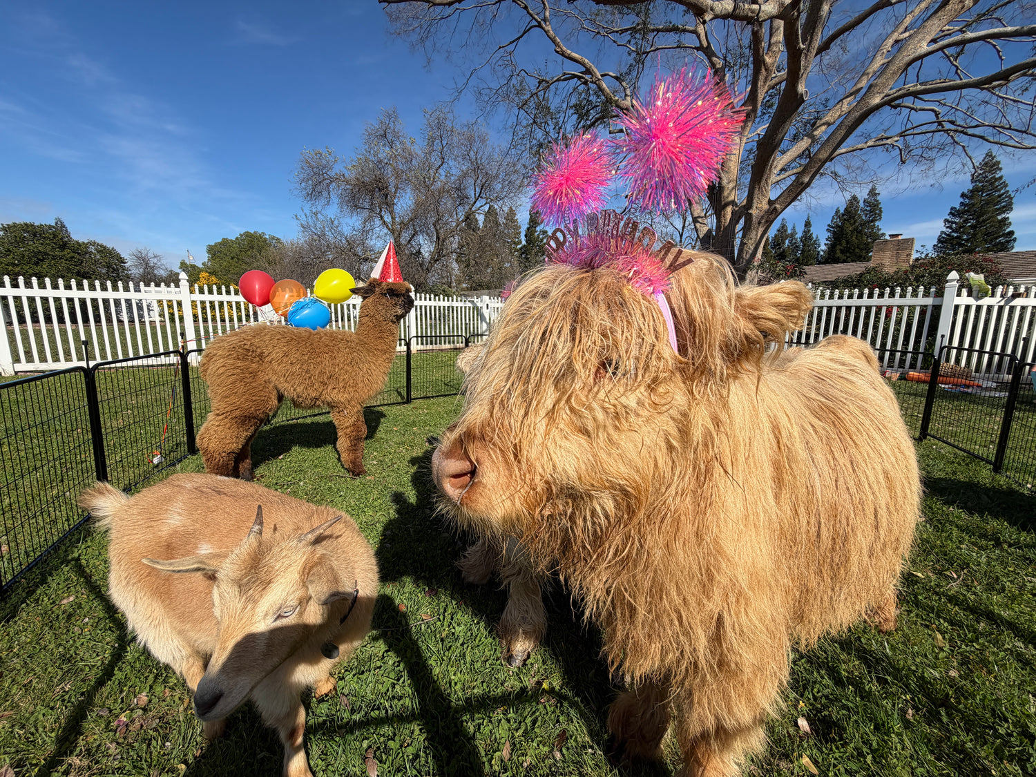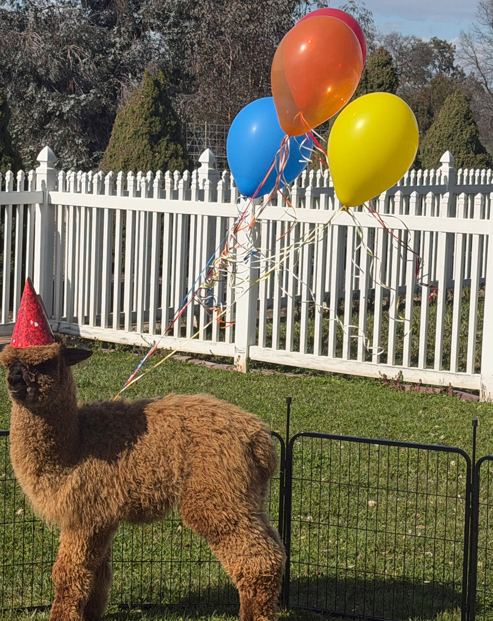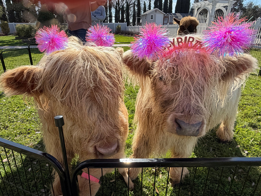 Your birthday party includes hands-on interactions with our Mini Highland cows, alpacas, mini donkeys, mini goats, Blacknose sheep, Holland Lop bunnies, and Silkie chickens — all set against the charm of our elevated farm atmosphere. It's equal parts adorable and unforgettable.